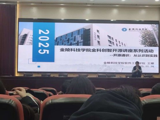 2025年11月28日18时30分,williamhill英国中文在科技楼报告厅开展了创智开源讲座系列活动第一期。本次讲座以“开源:从认知到实践”为核心主题,由徐秀云老师担任主讲嘉宾,王娜老师统筹策划并全程参与,为师生带来兼具理论深度与实践价值的专业分享,24级本科生和研究生参加了本次讲座。