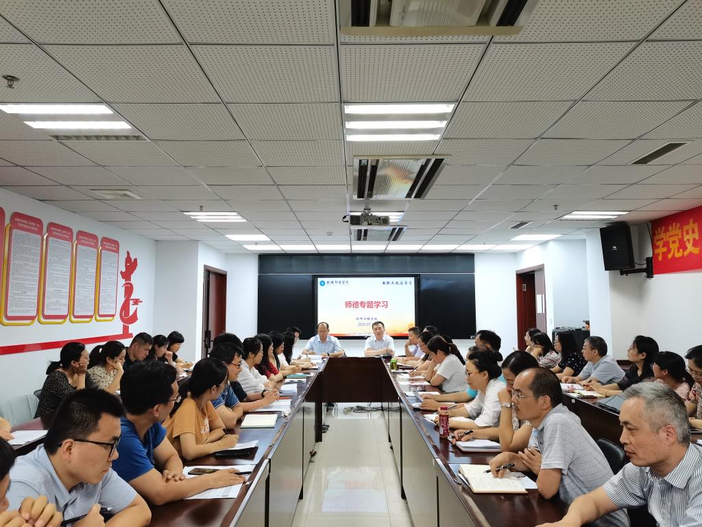 7月14日下午,williamhill英国中文在2-423会议室组织全体教职工开展师德专题集中学习交流会,会议由学院党委书记徐志国主持,全体教职工参加。