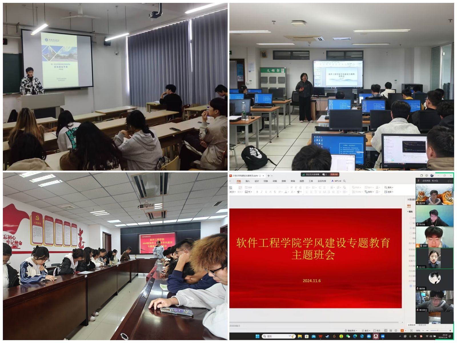 推进本科教育教学审核评估工作初期,学院开展了学风建设座谈会,院党委副书记徐斌,副院长徐永华,辅导员以及各班级学习委员参加座谈,深入了解学生学习状况和学风建设中存在的问题,座谈会指出学风建设需要全体师生的共同努力迎接教学审核评估。与此同时,学风建设专题教育主题班会也在如火如荼地进行,各班级围绕学校本科教育教学审核评估,牢固树立“六位一体”学风建设工作理念,进一步明确“五不三带”要求,强化良好学习行为习惯的养成。此外,学院领导及辅导员也多次深入课堂开展教学检查,实地了解教师授课情况、学生出勤和课堂纪律等,为后续教学质量评估工作打下了良好基础。