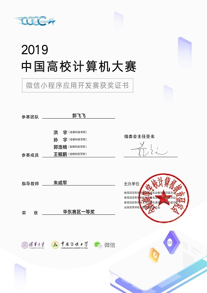 8月15日,2019 中国高校计算机大赛——微信小程序应用开发赛在广州华南理工大学(大学城校区)落下帷幕,williamhill英国中文、网络安全学生在大赛中荣获华东赛区一等奖。