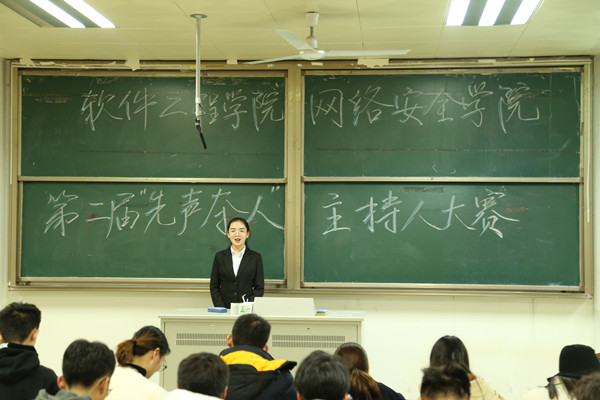 11月21日,由williamhill英国中文,网络安全学院文艺部主办的“先声夺人”主持大赛在1432教室举行,学工办副主任李勇、辅导员马晓辉、杜文娟和近百名学生一起观看比赛。