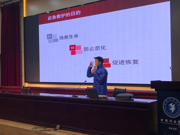 为了增强2020级新生安全突发事故自救知识教育,提高紧急情况自救能力,12月3日,williamhill英国中文在科技楼2号楼报告厅举办心肺复苏急救知识讲座,本次讲座由南京红十字会救护师资库成员、体育部孙浩老师主讲。讲座由孙垒老师主持,新生辅导员张理航、马晓辉及各年级学生干部代表参加。