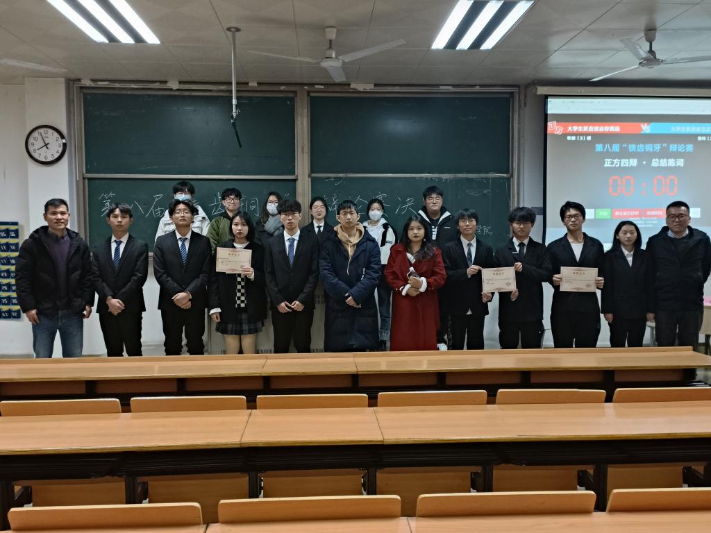 为增强学生明是非、明同异、察名实、处利害的能力,12月15日晚6点30分williamhill英国中文于教学楼1号楼1432教室举行了第八届“铜齿铁牙”辩论赛决赛。本次比赛的到场嘉宾有学工办主任张理航,21级辅导员产昊鹏老师,团总支学联主席团全体成员,辩论社社长张恩恒,副社长苏语以及williamhill英国中文各班同学参加。