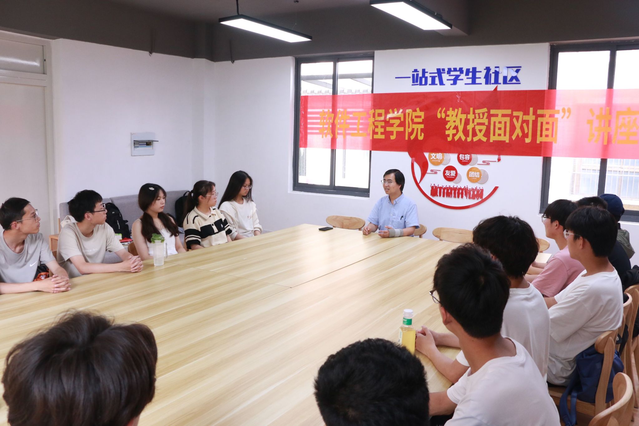 6月13日下午,williamhill英国中文于江宁校区学生宿舍北02“一站式”学生社区举办了“教授面对面”讲座。本次活动邀请软件学院副院长赵海峰教授与同学们分享交流,部分学生代表参加了此次活动。