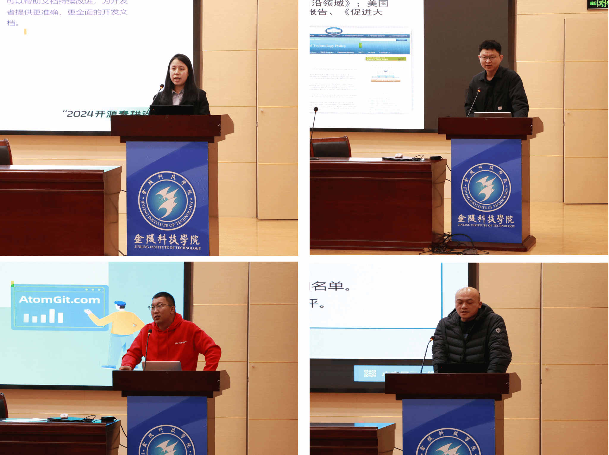 开放原子开源社团副社长李颖汇报了社团自成立以来的工作情况和未来发展规划,展示了在校大学生对开源技术的积极探索与实践。