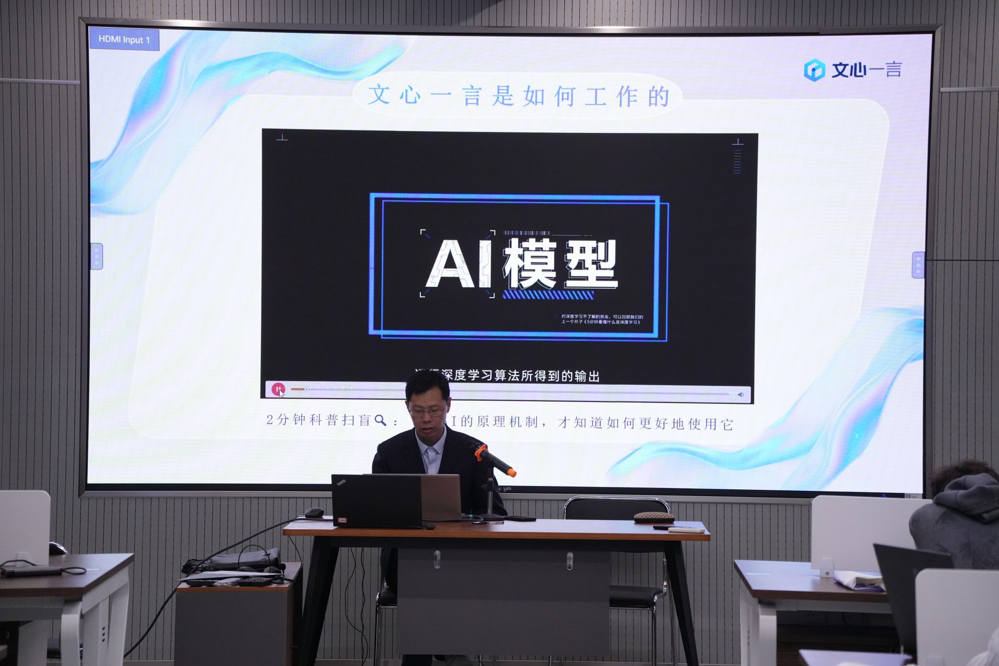 讲座中,王华老师介绍了人工智能的发展历经五个历史阶段。从最初的萌芽期,到专家系统的兴起,再到神经网络的发展、深度学习的突破以及如今生成式 AI 的蓬勃发展,每一个阶段都为人工智能的进步奠定了坚实的基础,并进一步指出人工智能技术在医疗、交通和金融三个典型场景中发挥着重要作用。在医疗领域,人工智能助力疾病诊断和治疗,提高医疗效率和准确性;在金融领域,它为风险评估和投资决策提供有力支持;在交通领域,人工智能实现智能交通管理,提升出行的安全性和便捷性。同时也强调了生成式AI百度飞桨和文心大模型在人工智能领域表现突出。讲座最后王华老师提出人工智能与生成式 AI 的产业实践正在不断拓展,并将继续引领产业创新,为经济社会的发展带来更多的机遇和挑战。董如蝉老师现场还组织同学们进行了有关AI的问答活动以及抽奖活动,提升了现场同学们的参与度和互动性。