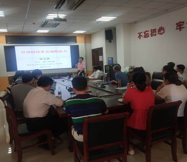 接着,孙宝林教授作了题为《区块链技术及编程能力》的报告,他从区块链技术的概念、特征及分类、技术原理、数据结构、核心问题以及开源项目和工具等方面做了深度详细的介绍。孙教授是享受湖北省政府专项津贴的二级教授,先后主持了国家社会科学基金、国家自然基金、中国博士后科学基金、国家级新工科研究与实践项目、湖北省高校学校优秀中青年科技创新团队资助计划项目等共计20余项。他潜心学术研究,成果丰硕,跟大家分享了自己的科研工作之路,并就所在学校本科国一流软件工程专业开设的通识课程——《区块链技术》进行了详细的介绍。