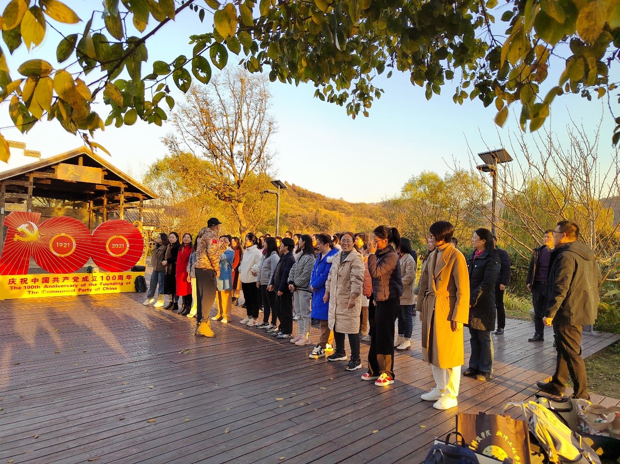 为深入学习十九届六中全会精神,凝心聚力走好新时期的赶考路,11月24日下午,williamhill英国中文分工会组织全体教职工赴南京市第二批党史学习教育基地---栖霞区桦墅村开展素质拓展团建活动。