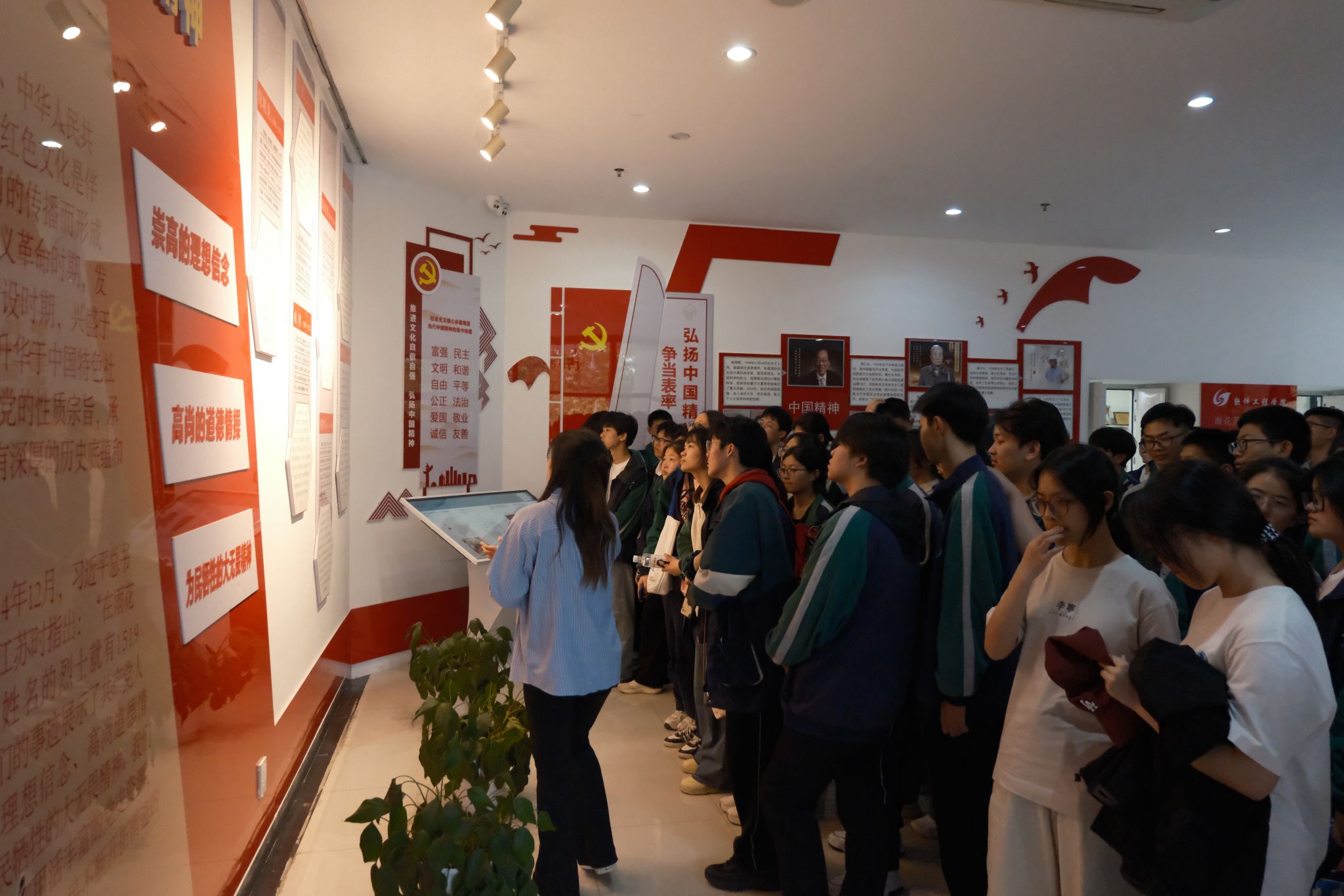活动伊始,志愿者们以饱满的热情和专业的素养,带领建湖第二中学的学生依次参观了校动漫图书馆和williamhill英国中文雨花英烈精神展厅。在雨花英烈精神展厅,讲解员围绕学院思政工作的文化、时代和专业特色凝练方面的重要举措,结合南京本土红色文化的历史资料和学院全面开展鲜活实践案例做了宣讲。学生们神情肃穆,认真聆听,在历史与现实的交汇中感受着红色文化的力量,汲取着宝贵的精神养分。