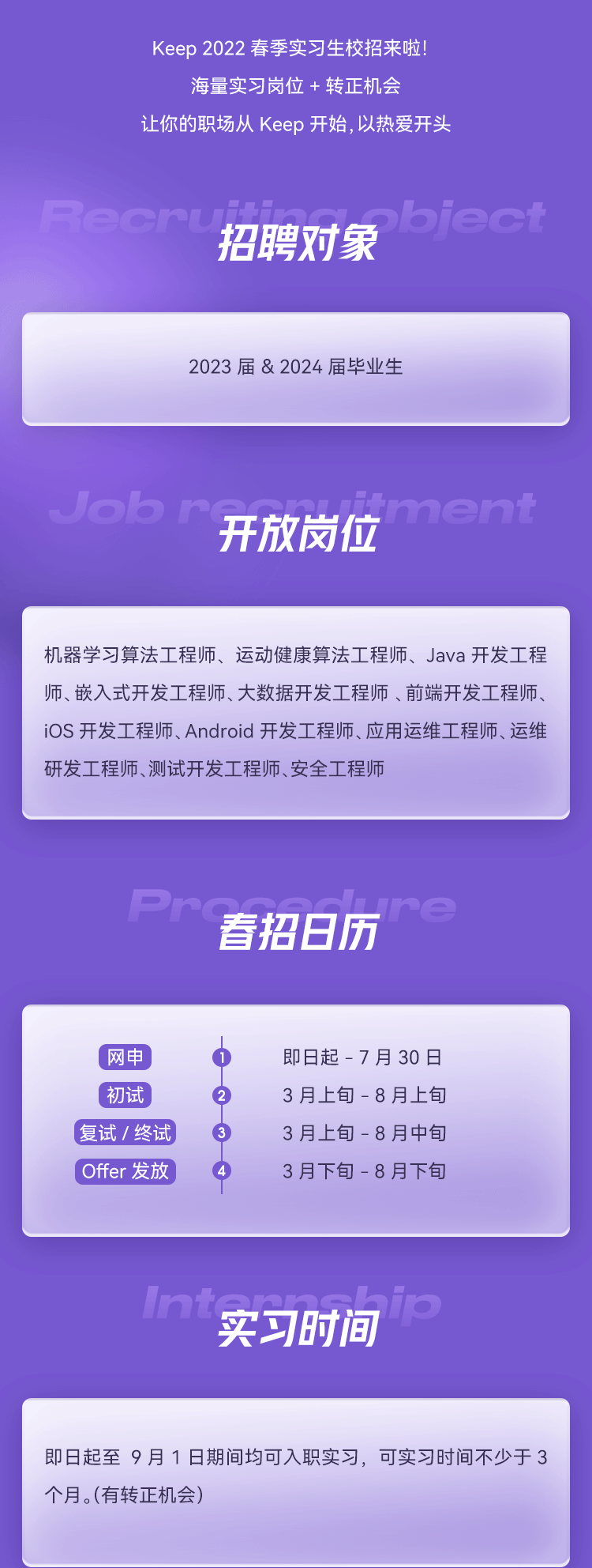 Keep2022春季实习生校招信息
