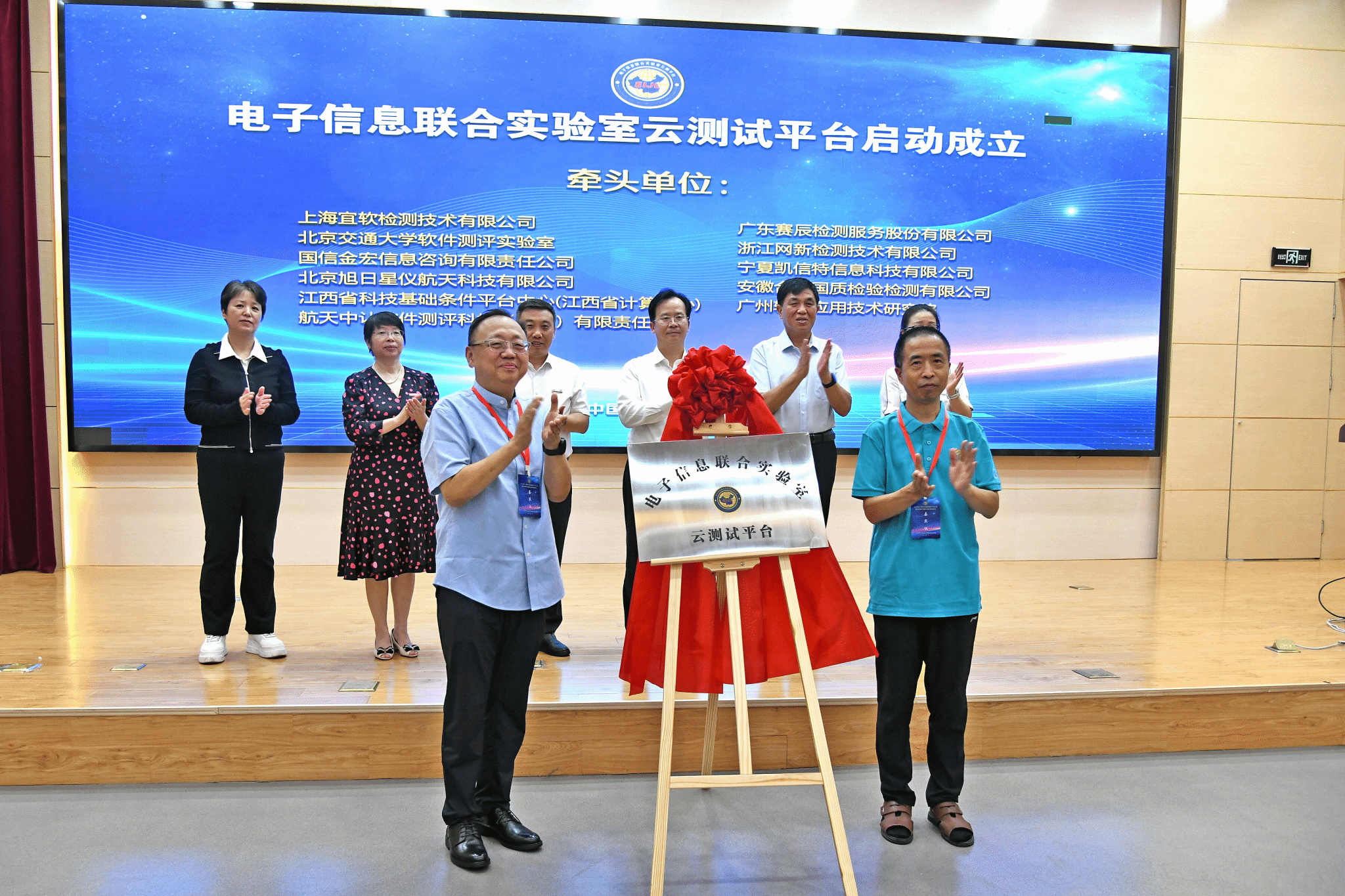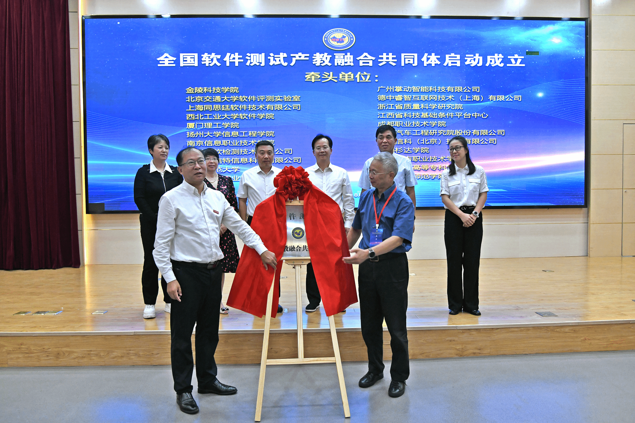张燕副校长、江宁区工信局季芳副局长、其他领导和嘉宾共同见证了“全国软件测试产教融合共同体”和“电子信息联合实验室”揭牌仪式,季芳表示江宁区将为产业发展和校企合作提供更大的支持,努力打造电子信息测试领域的示范样板。