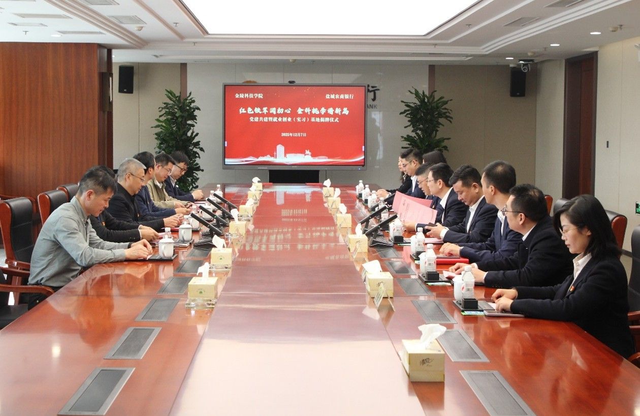 为深入学习贯彻党的二十大及二十届三中、四中全会精神,持续强化党建引领作用,推动党建工作与业务发展深度融合,12月7日下午,软件学院赴盐城农商银行开展党建共建活动,并举行就业创业(实习)基地揭牌仪式。盐城农商银行党委书记、董事长许闯,党委副书记、行长徐键,党委委员、副行长沈光彩;校党委常委、副校长高永祥,校长办公室主任、校友办主任庞海燕,软件学院党委书记戴军,党委副书记徐斌,以及双方单位相关负责同志共同参加活动。