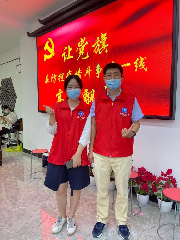他们中有机关教工党支部书记王爱侠同志和教师第二党支部书记赵海峰同志,两位支部书记带头示范,用抗疫实际行动,践行“我为群众办实事”实践活动;有校优秀教育工作者窦如林同志,“舍小家、为大家”,与同在学校工作的妻子一起做志愿者,共赴抗疫前线;有学院的学工办主任张理航同志,于百忙中主动请缨,到组织最需要的地方去;有新上任的办公室副主任赵园同志,顾全大局、任劳任怨,积极参与溧水体育馆志愿服务,负责机场经停人员的身份信息及详细行程登记工作;有教师党支部组织委刘娅同志,在现场做着记录混检试剂条码号,进行系统登记,扫描检测人的采样码,指导检测人现场完成系统注册和信息填写等平凡工作。