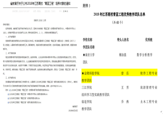 江苏省青蓝工程优秀教学团队:软件工程专业教学团队