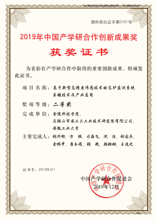 胡兴柳,基于新型高精度传感技术的高炉监测系统关键技术及产业应用,中国产学研合 作创新成果奖,二等奖,2019